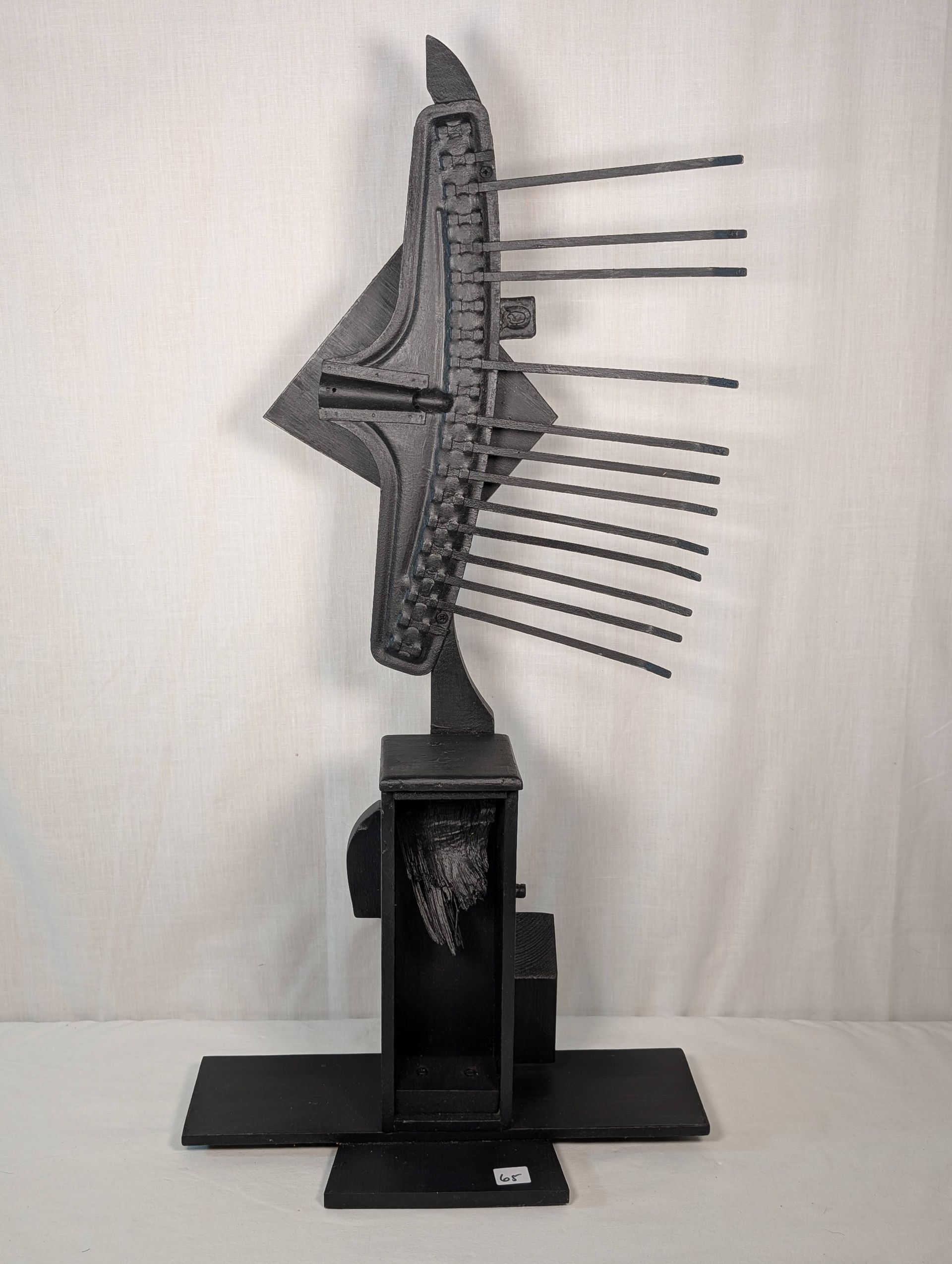 "Broken Wing" assemblage sculpture, previously labelled and priced by Catherine Hale ($2700). Materials: Wood, metal, plastic.