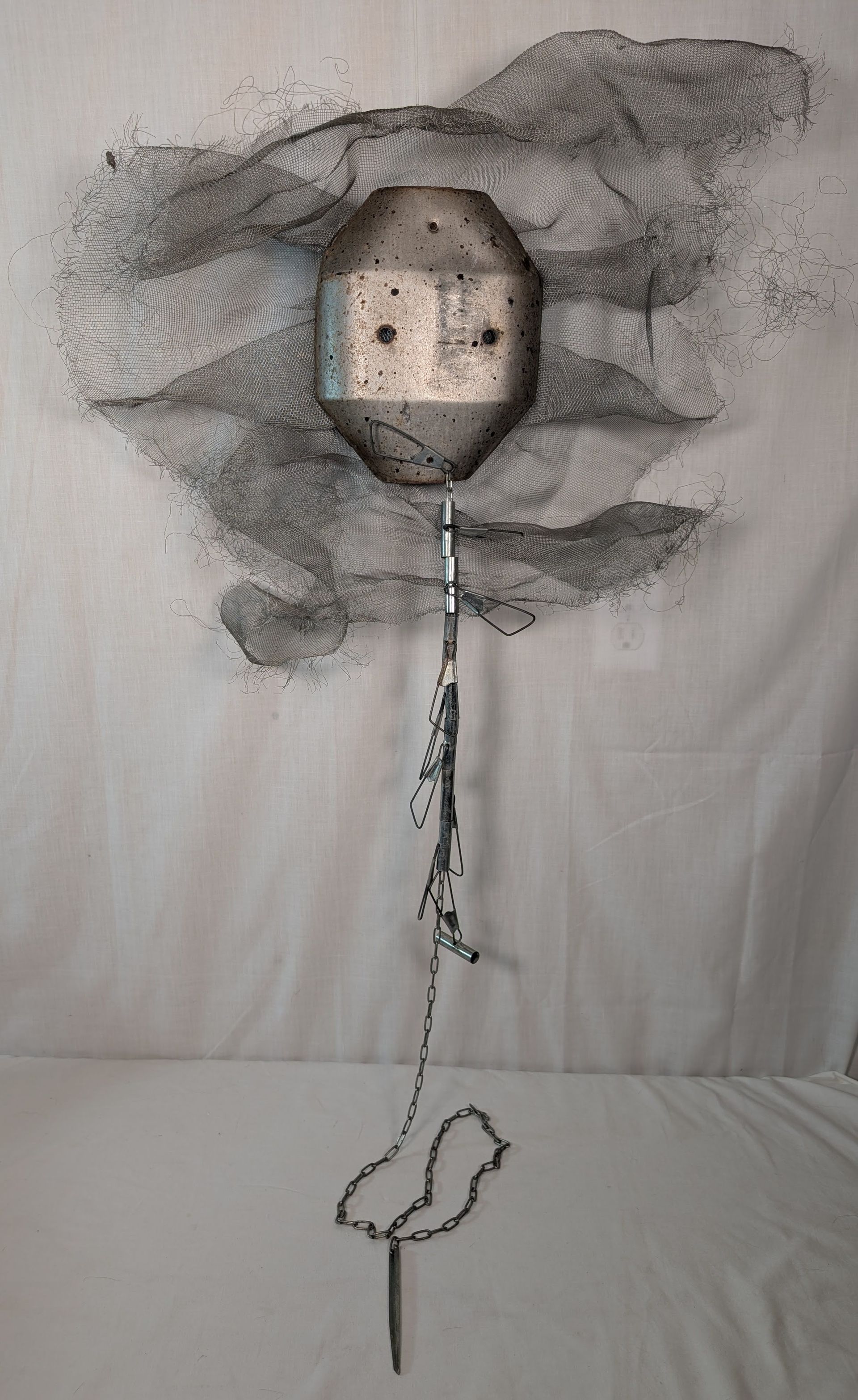 Signed by Catherine Hale and titled "Cryo Spirit". Steel mask with mesh and metal hanger.